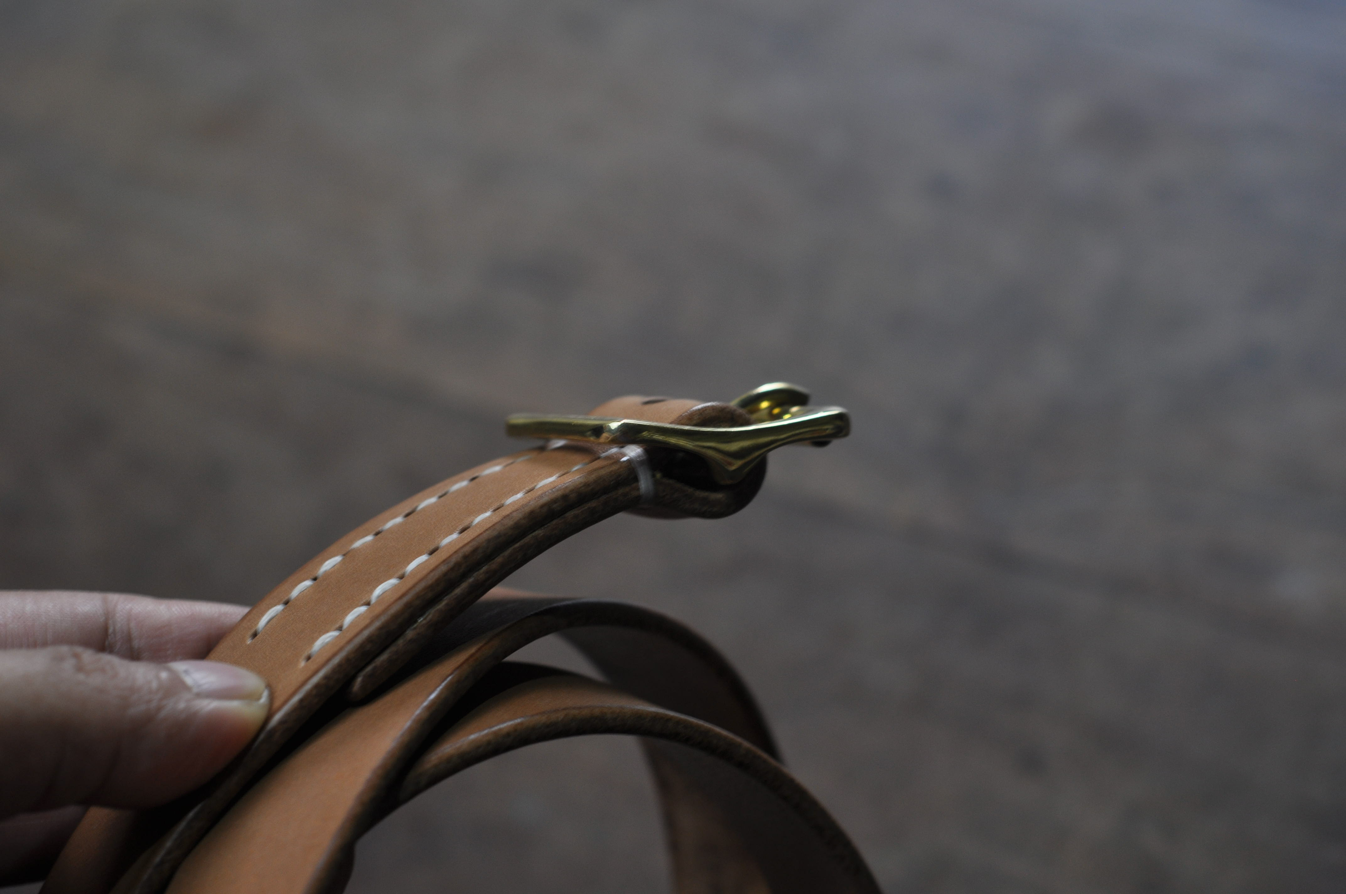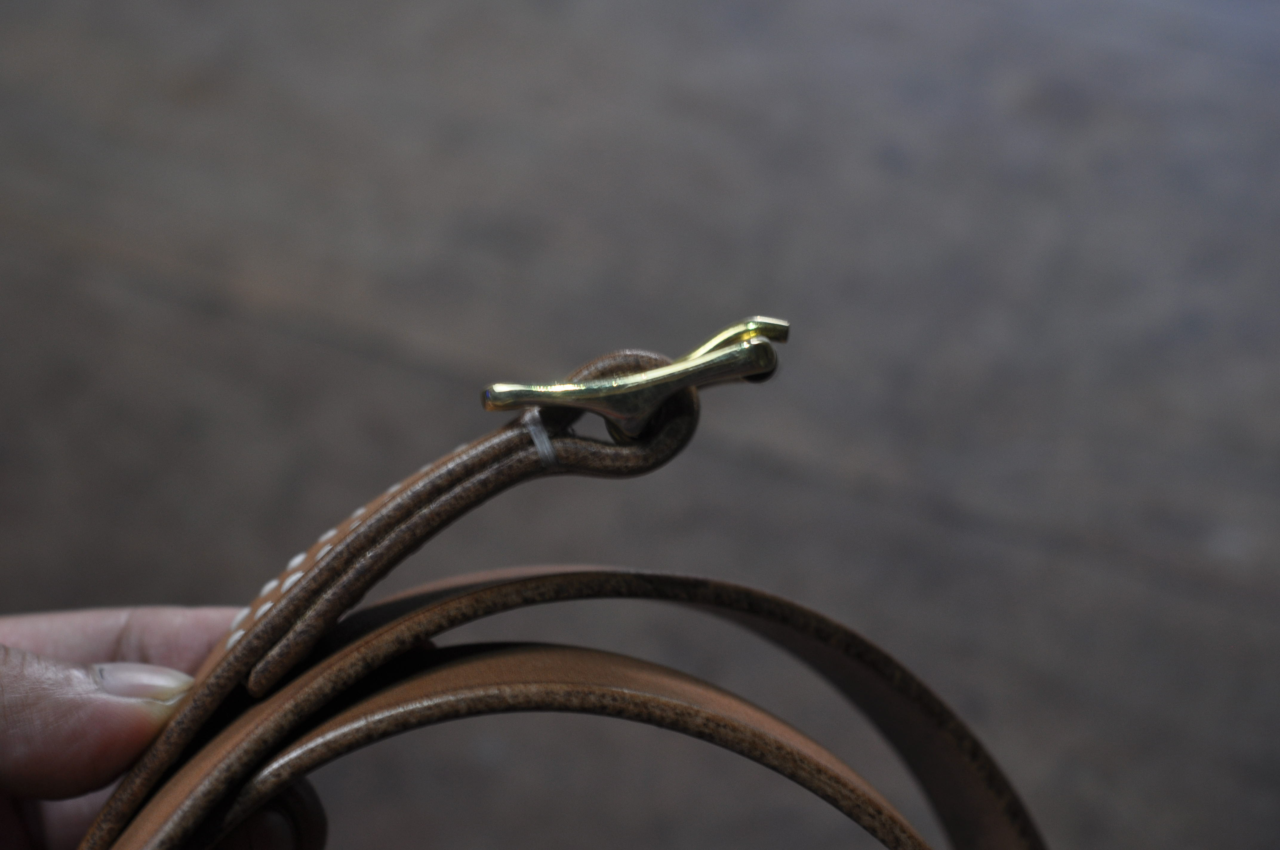 Jika kamu melihat buckle kuningan ini dari samping, kamu akan melihat profilnya yang tidak datar, melainkan melengkung. Kami menyebut desain ini tipe Halter.