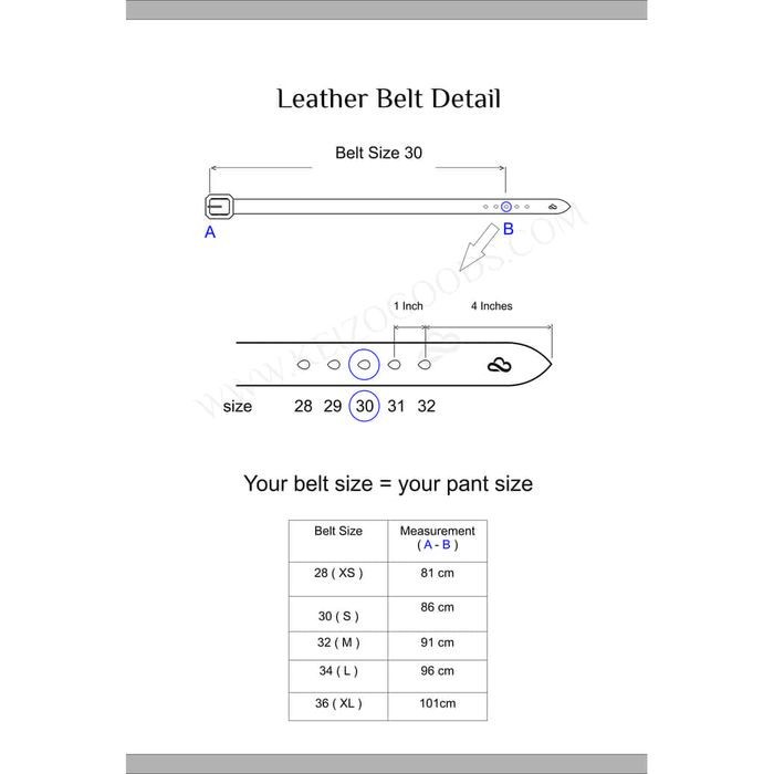Desain Leather Belt Keizo adalah size fit dengan ujung sabuk berada di antara belt loop pertama dan kedua, sehingga cocok bagi anda yang ingin memiliki ikat pinggang dengan ujung sabuk ideal dan tidak terlalu panjang.