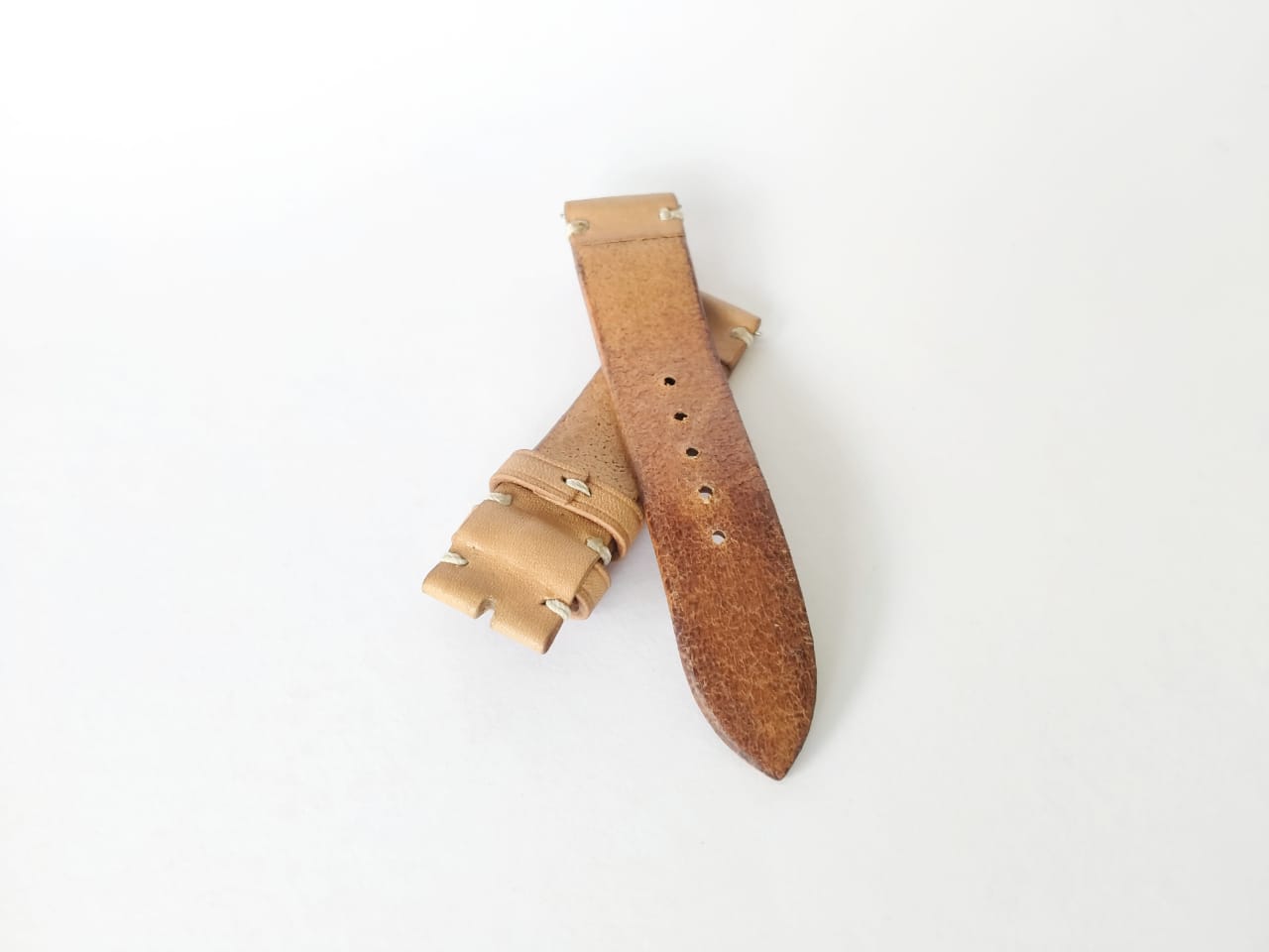 Keizo Leather Watch Straps satu lapis yang dikerjakan dengan cara handmade, terbuat dari satu lapis kulit Vachetta leather padat. Dirangkai dan di jahit dengan tipe Point Stitching yang berkesan simple namun juga durable, anda dapat memilih varian benang yang tersedia atau dapat dipesan dengan standar benang yang ada.
