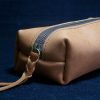 Clutch model simpel dengan teknik pembuatan secara handmade dan dijahit tangan menggunakan benang polyester wax dan sinew pada bagian handle, bahan menggunakan kulit sapi pilihan dengan textur halus dan tahan air.